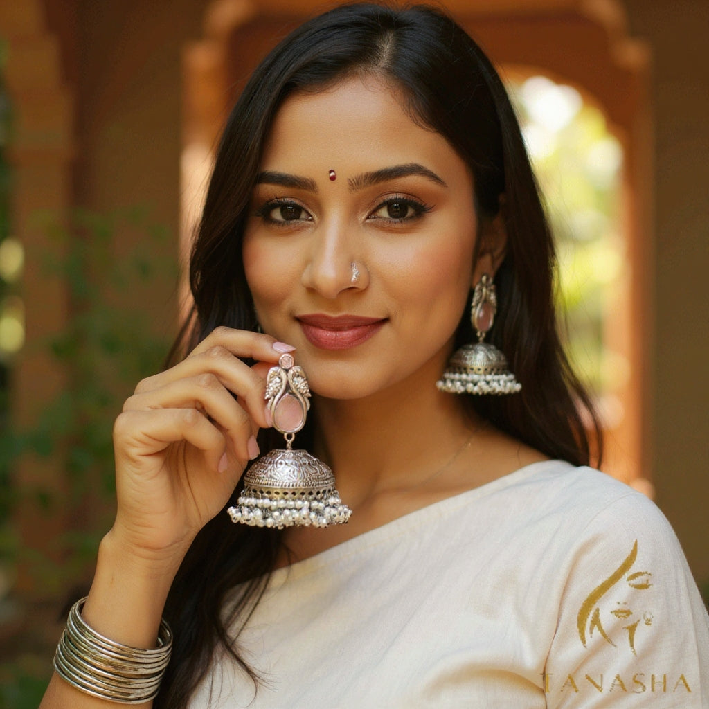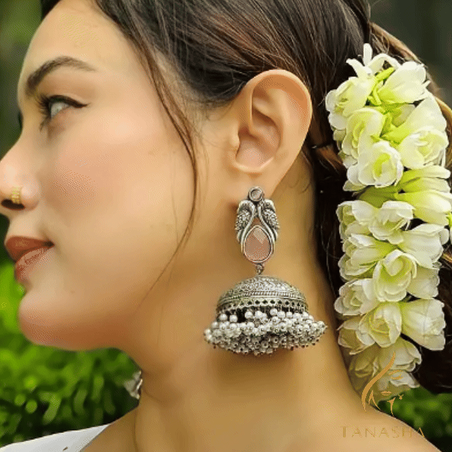 আরওয়া ব্লসম ঝুমকা একটি নরম, এলিগ্যান্ট এবং ঐতিহ্যবাহী ডিজাইনের স্টেটমেন্ট পিস। অ্যান্টিক সিলভার ফিনিশ, হাতে খোদাই করা নকশা এবং হালকা গোলাপি স্টোন একসঙ্গে এই ঝুমকাটিকে আরো বেশি ইউনিক ও আকর্ষণীয় করে তুলেছে। যেকোনো অনুষ্ঠানে লুককে করে তোলে একদম নজরকাড়া।