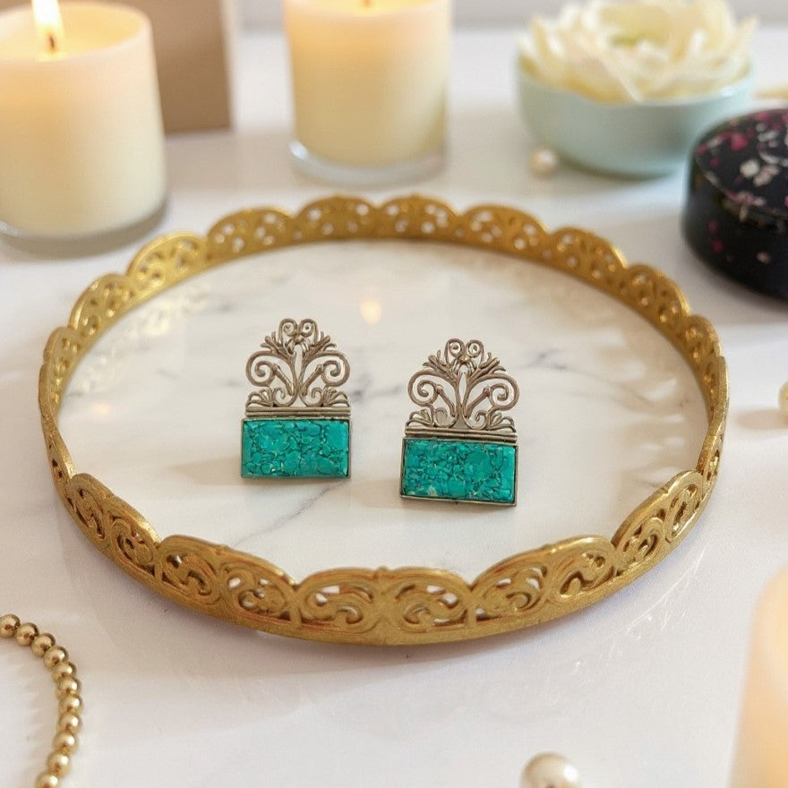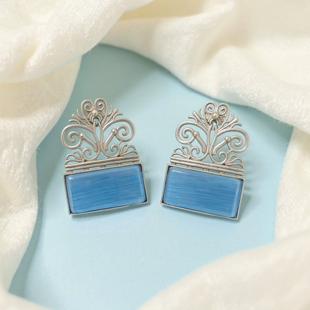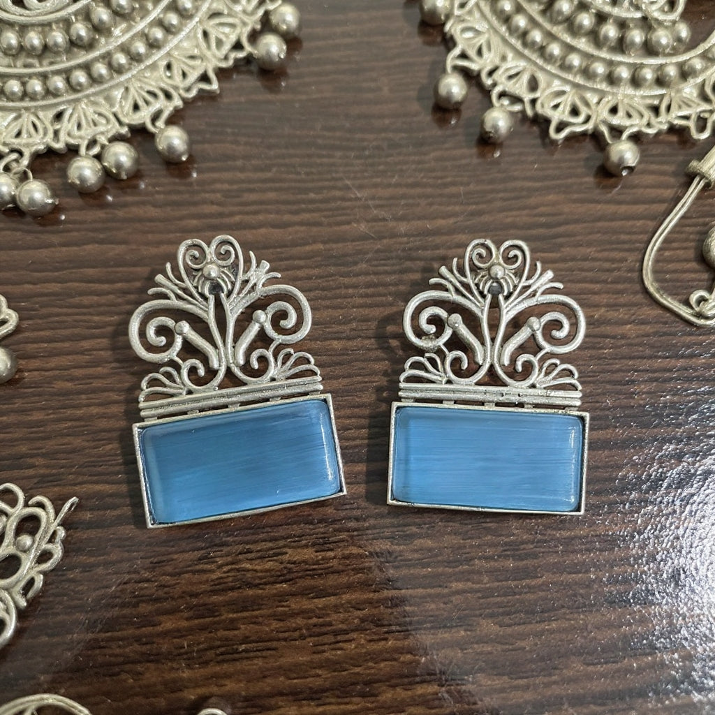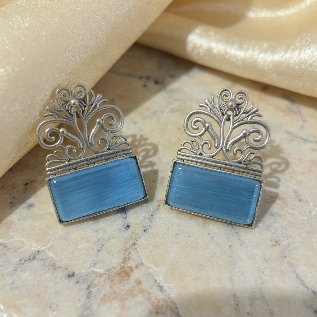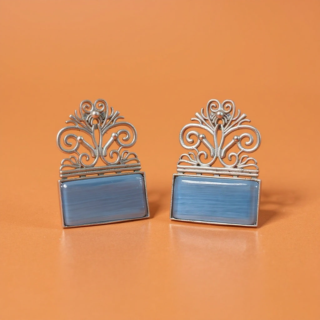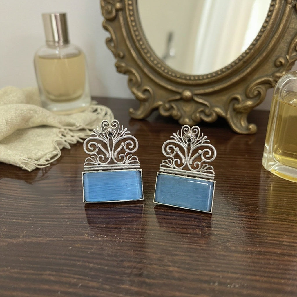 ঐতিহ্য আর আধুনিকতার মেলবন্ধনে তৈরি নীলপাথর মাধুরী স্টেটমেন্ট ইয়ারিংস