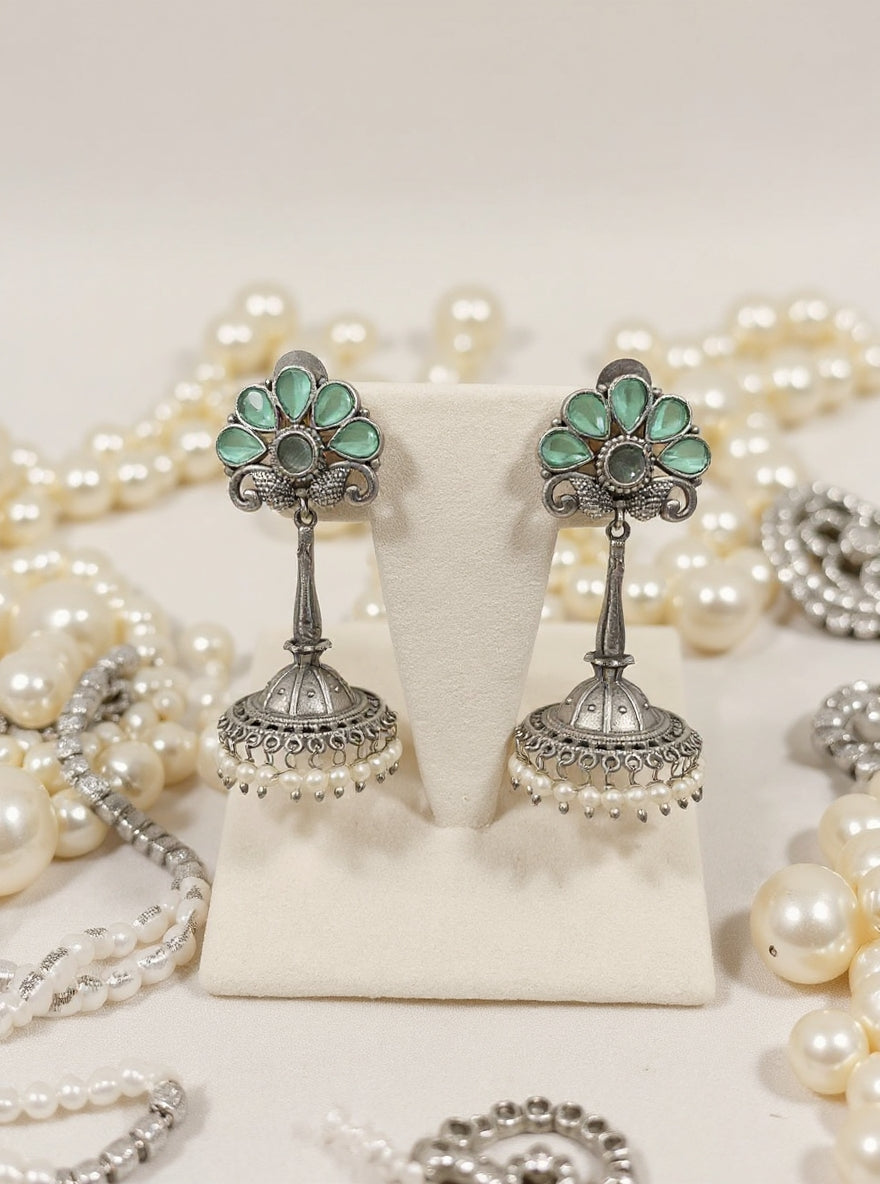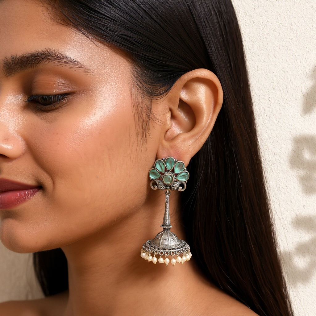 অ্যান্টিক সিলভার ফিনিশ ও নিচের ডেলিকেট পার্ল ডিটেইল ঝুমকাটিকে দিয়েছে রাজকীয় লুক। দেশি পোশাক, কুর্তি কিংবা ফিউশন আউটফিট—সব কিছুর সাথেই এই ঝুমকা মানিয়ে যায় নিখুঁতভাবে।