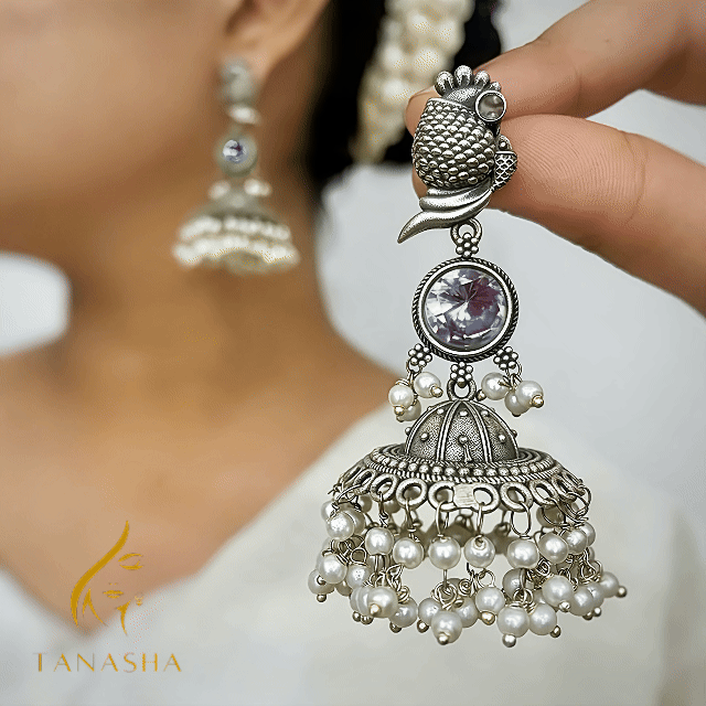 অক্সিডাইজড সিলভার ফিনিশে তৈরি এই ঝুমকা যেমন ঐতিহ্যের সৌন্দর্য ধরে রাখে, তেমনি আধুনিক পোশাকের সাথেও মানিয়ে যায় অনায়াসে।