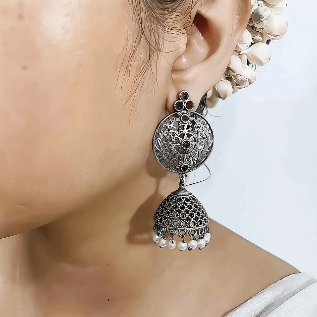 হাতে তৈরি এই সিলভার রিপ্লিকা ঝুমকার ওপেনওয়ার্ক ডিজাইন আর মুক্তার দুলুনি একে করেছে একেবারে অনন্য।