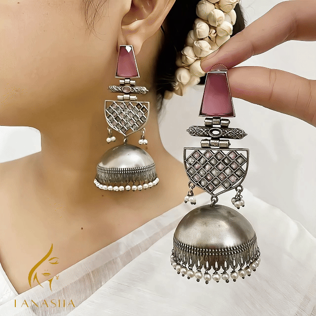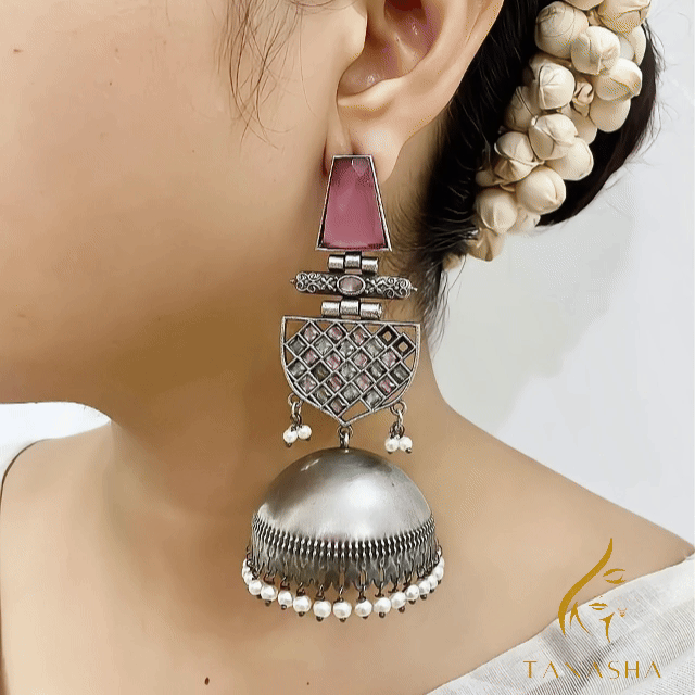 এই দুলে রয়েছে ক্লাসিক সিলভার ফিনিশ, সাথে হালকা গোলাপি-লাল স্টোন যা তোমার যেকোনো ট্র্যাডিশনাল বা ফিউশন সাজে এনে দেবে রাজকীয় গ্লো।