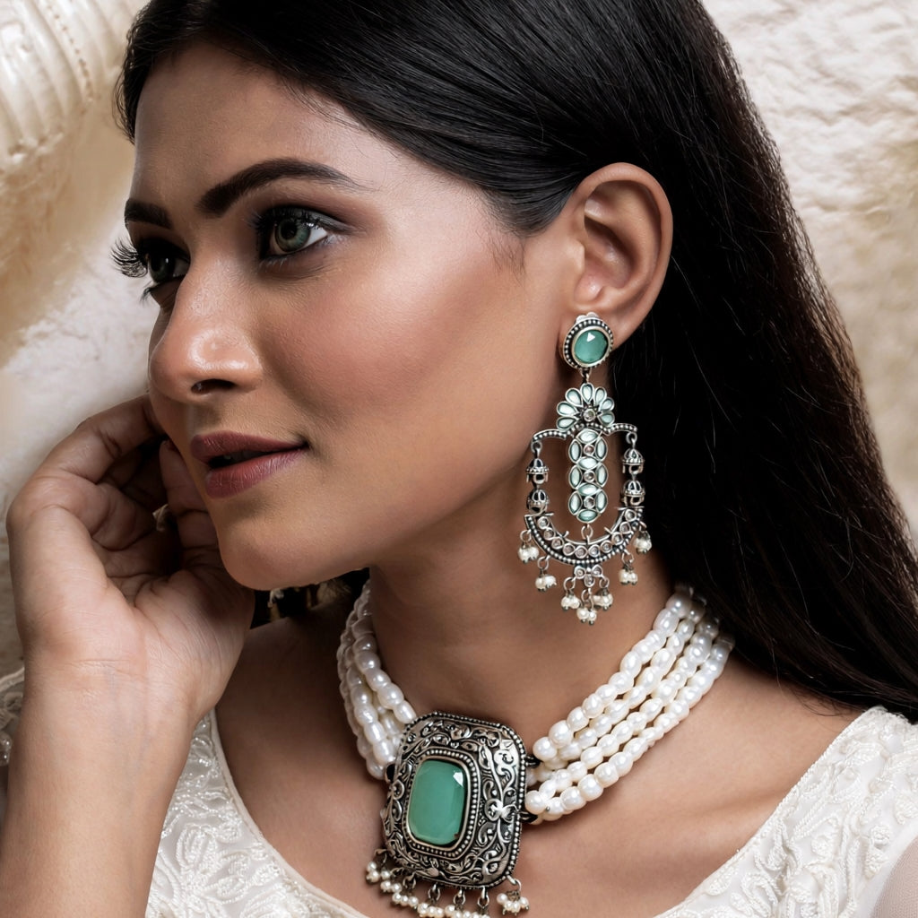 • টপ অংশে সুন্দর গ্রিন স্টোন – যা পুরো লুককে করে আরও ফেমিনিন