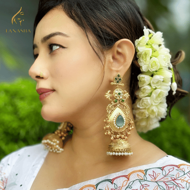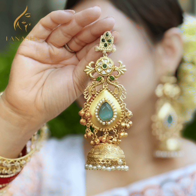 এই দুলে রয়েছে নিখুঁত হাতে তৈরি কারুকাজ, সবুজ স্টোনের ঝিলিক আর মুক্তোর সূক্ষ্ম ছোঁয়া যা তোমার উৎসবের সাজে এনে দেবে গ্ল্যামার ও গ্রেস।